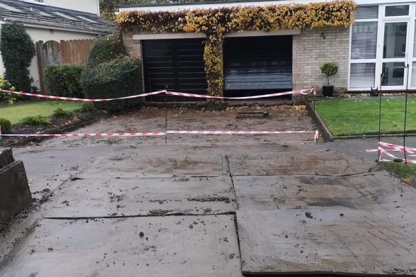 A lift and relay of this driveway in Knutsford. The flags had originally been spot laid and on no base. We have installed a membrane, MOT base and all flags have been laid on a full mortar bed.