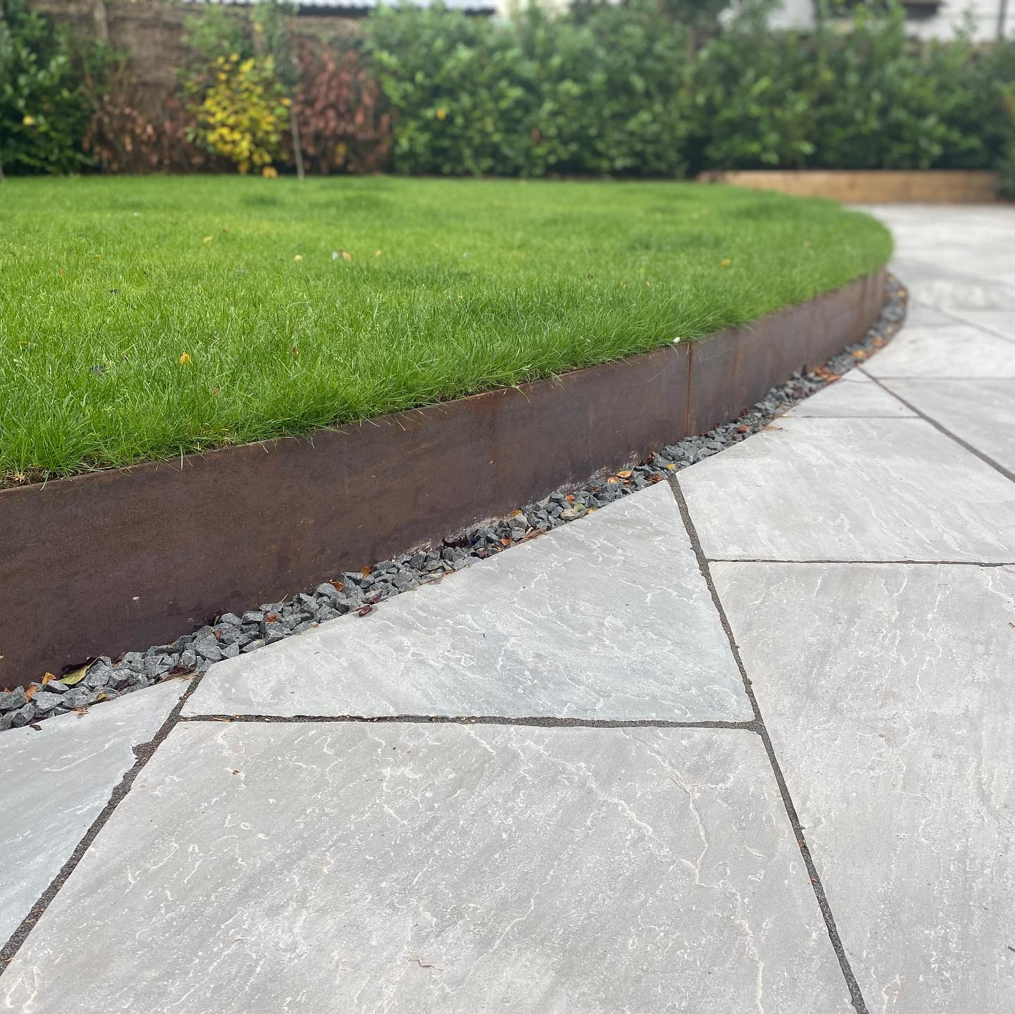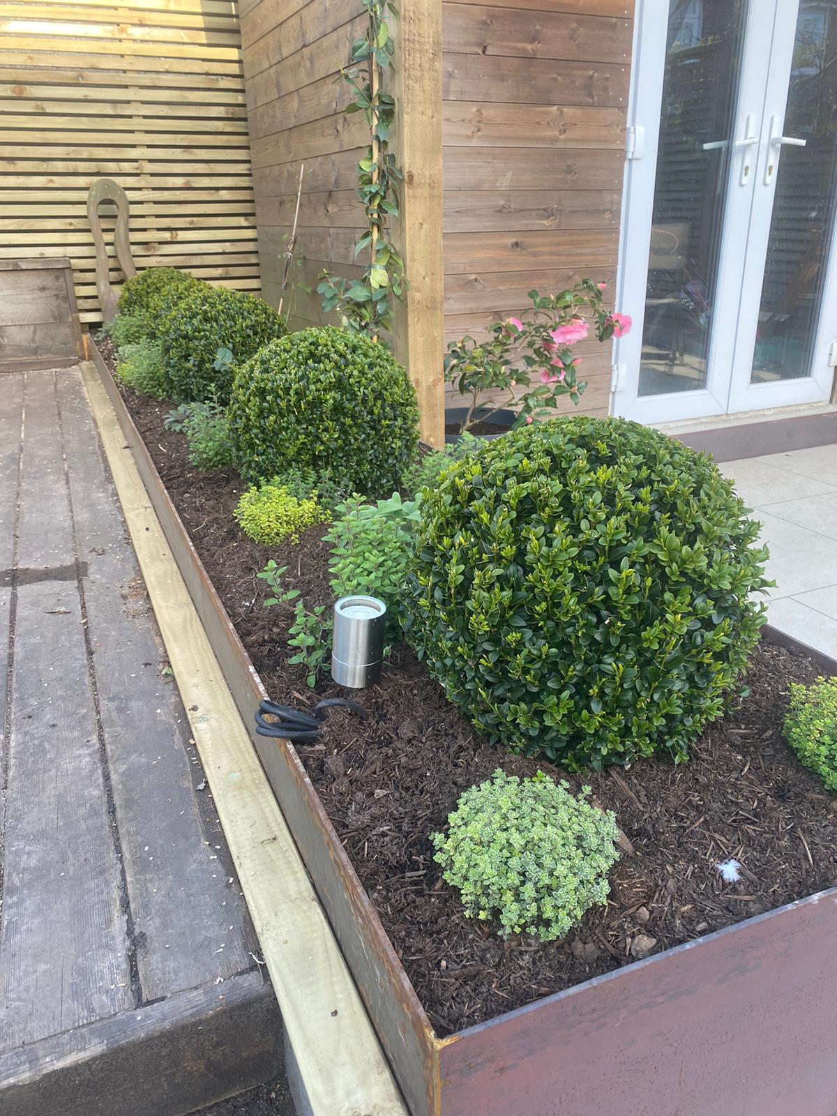 Here we’ve created retaining walls and edgings using 6mm steel. This will naturally colour and adds a modern yet classic look to any garden. If you like the look of this take a look at our website for a full list of our services and give us a call. Full design to build service available.