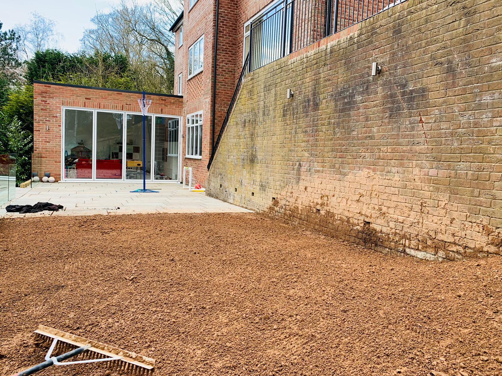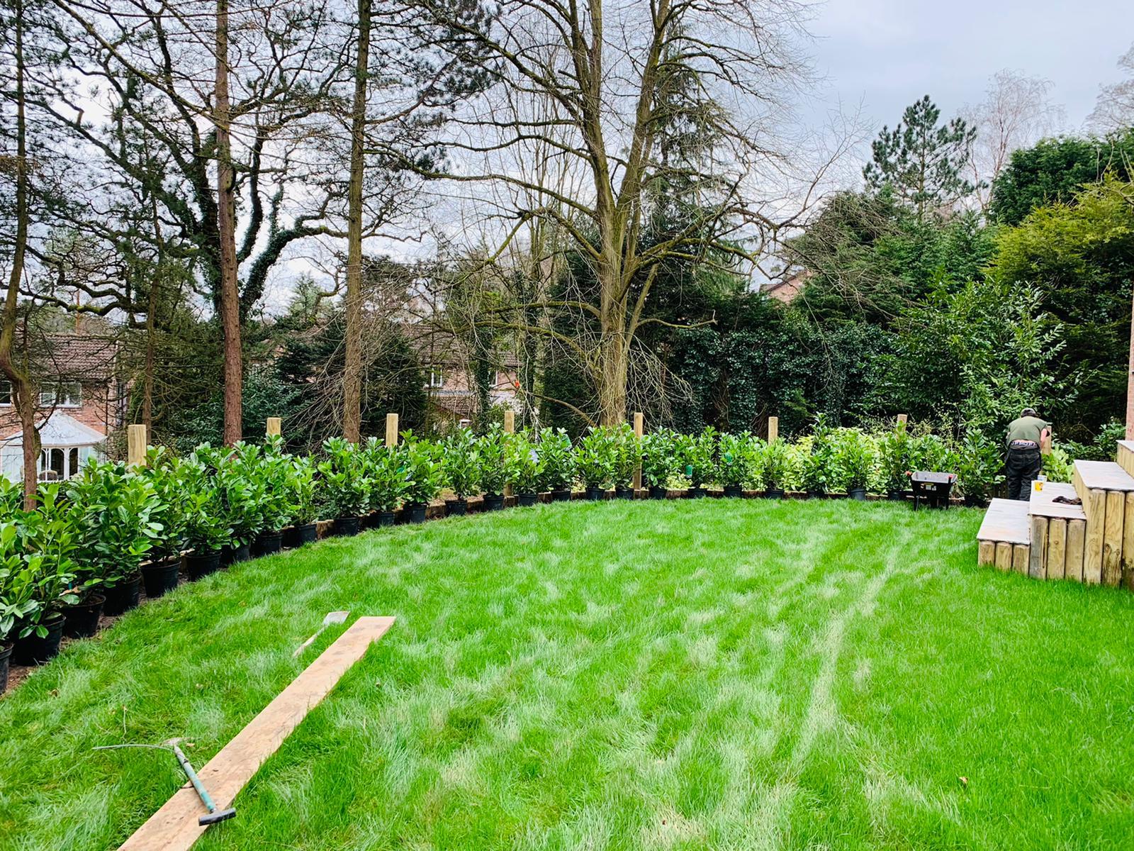 The Acorn Landscape Services team applied organic fertiliser and prepped the ground. We then planted a lovely cherry Laurel hedge along with some lovely local turf.