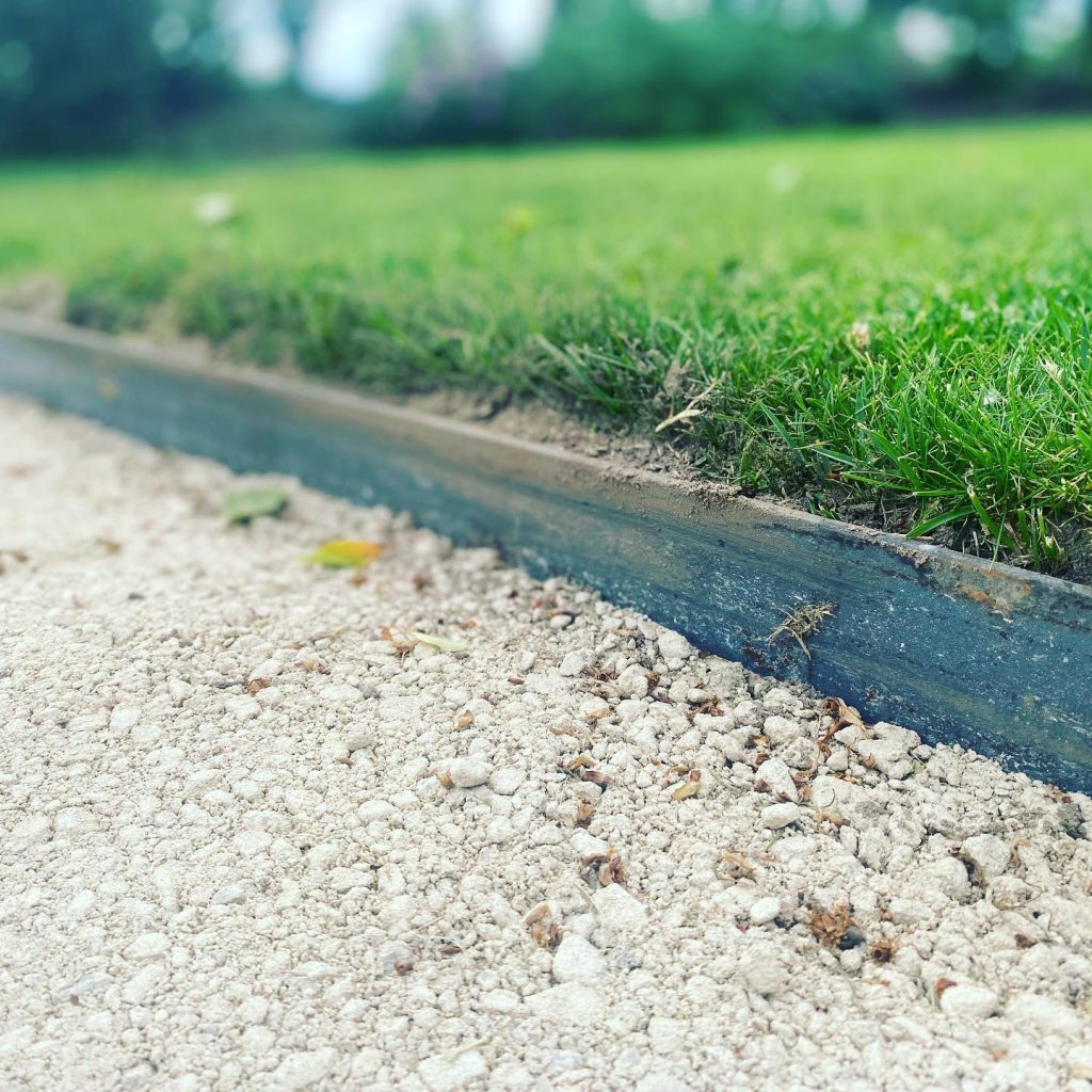 Sparks were definitely flying during this steel edging installation. 6mm steel to create a smooth, sleek and contemporary edge for your garden. This can be used as a retainer for all materials.